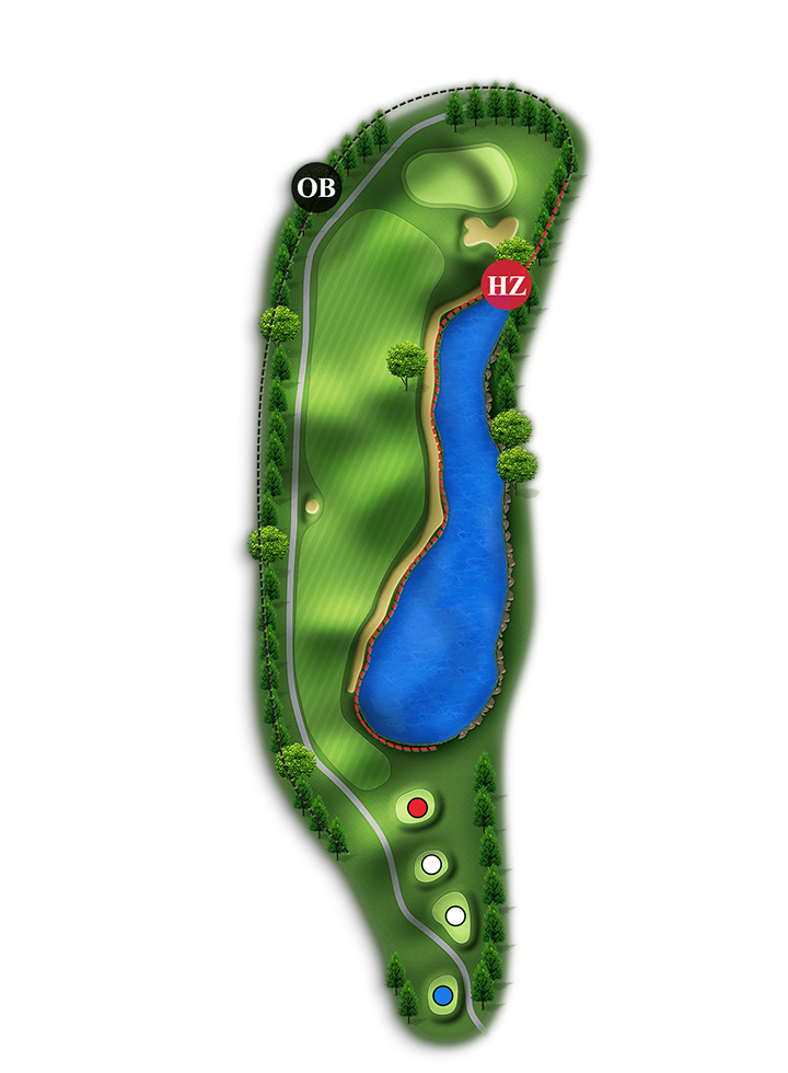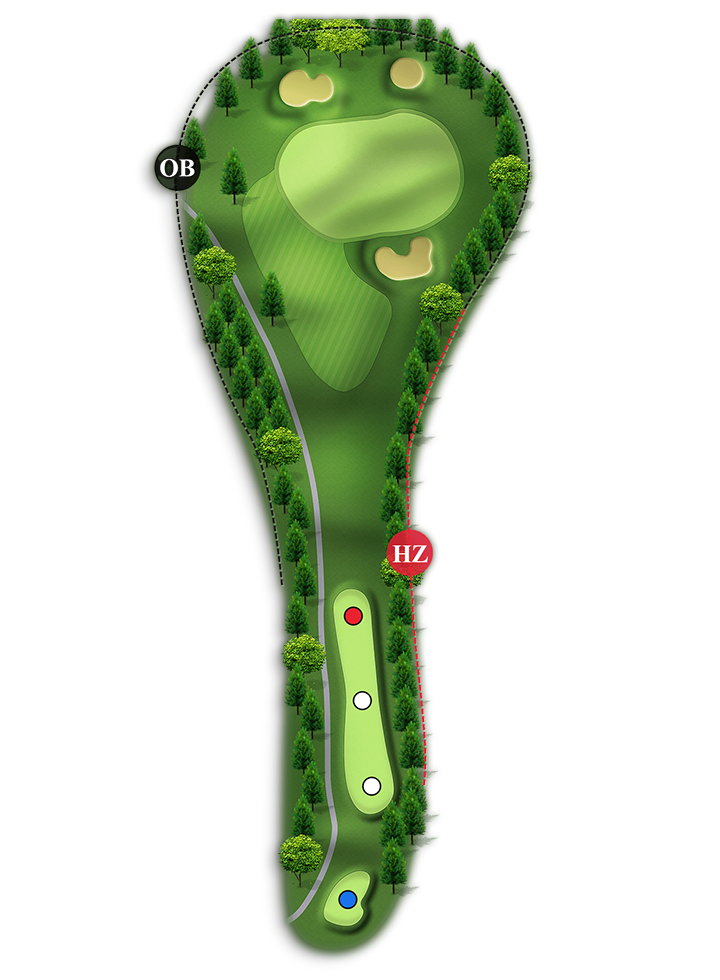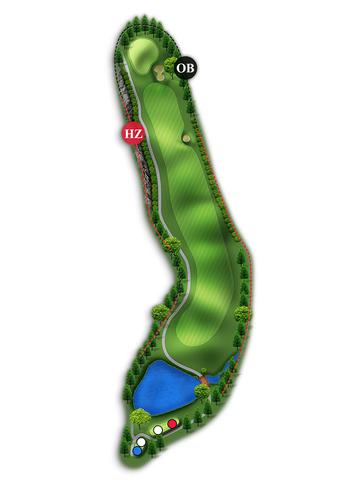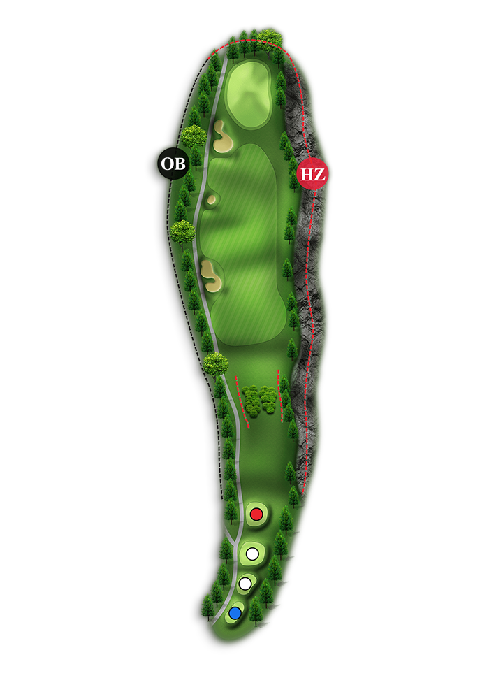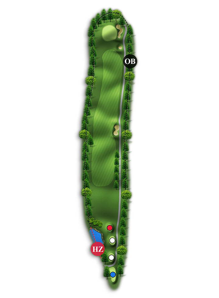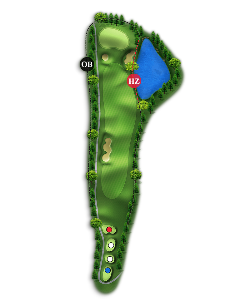홀 중에서 가장 긴 Par4홀입니다. 오른쪽은 해저드이고 왼쪽은 OB입니다.(좌측 부분적으로 해저드 처리 150m~100m 사이)