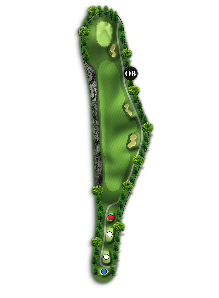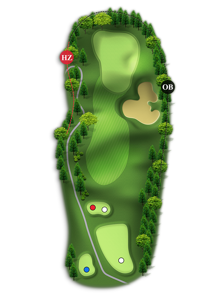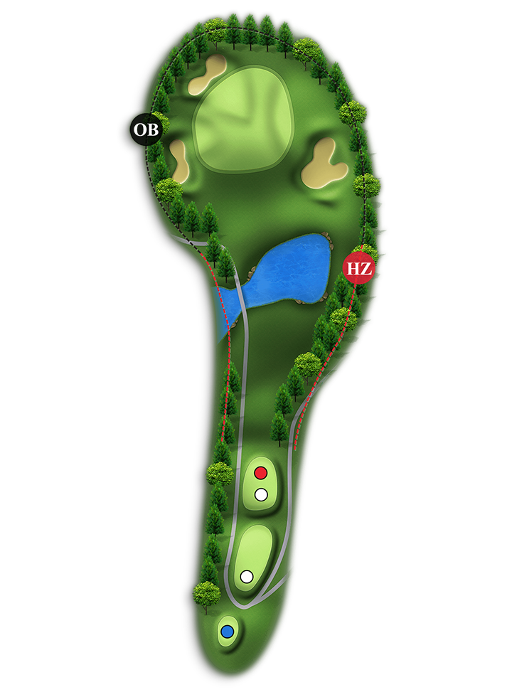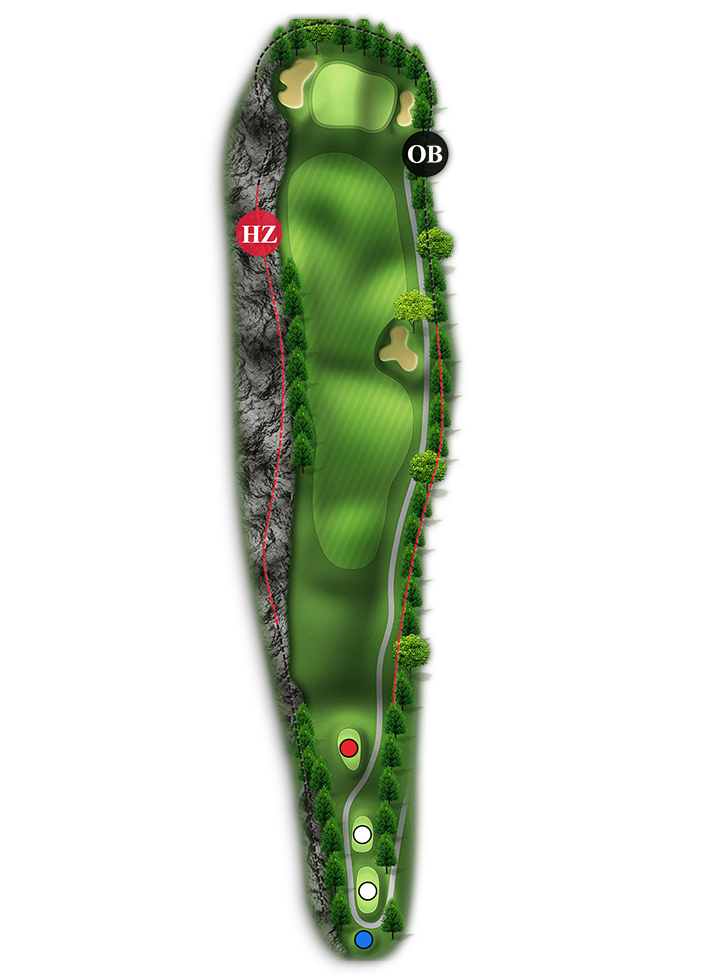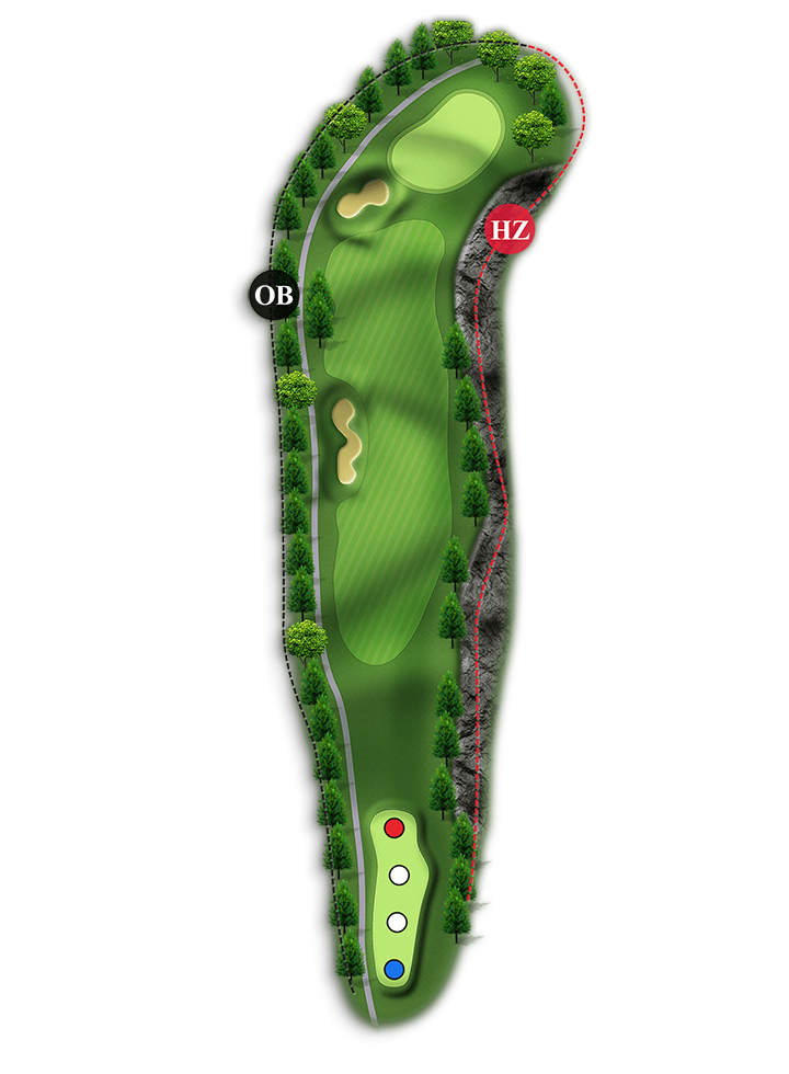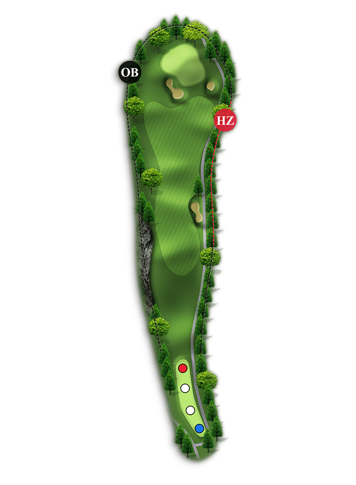 홀 중에서 가장 긴 Par4홀입니다. 오른쪽은 해저드이고 왼쪽은 OB입니다.(좌측 부분적으로 해저드 처리 150m~100m 사이)