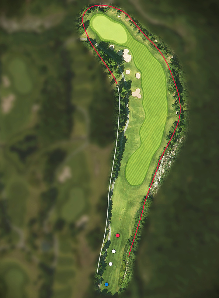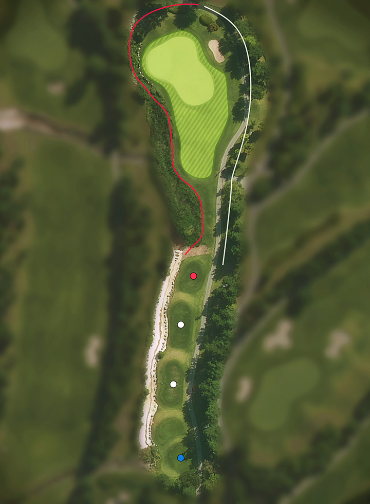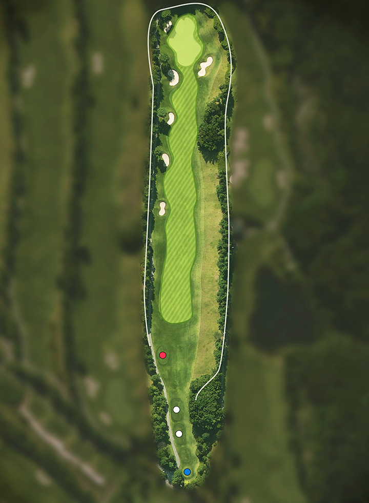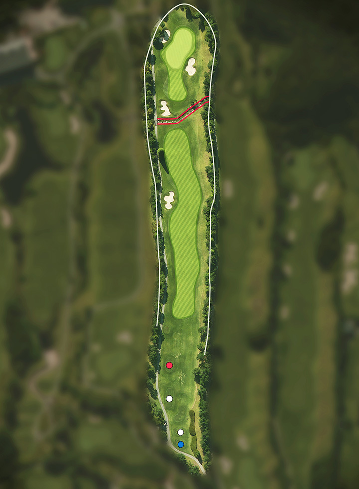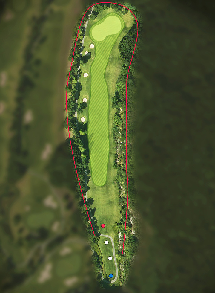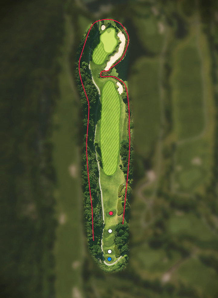 • [공략 포인트] 가장 긴 PAR 5홀이며, 전방 왼쪽에 보이는 나무 군집을 보고 티샷합니다. 세컨샷은 전방 360미터 지점에 페어웨이를 가로 지르는 크리크가 있으니 클럽 선택에 신중합니다.