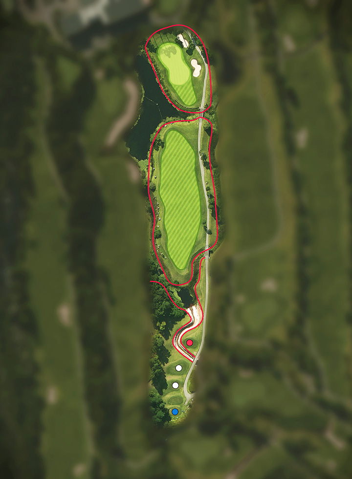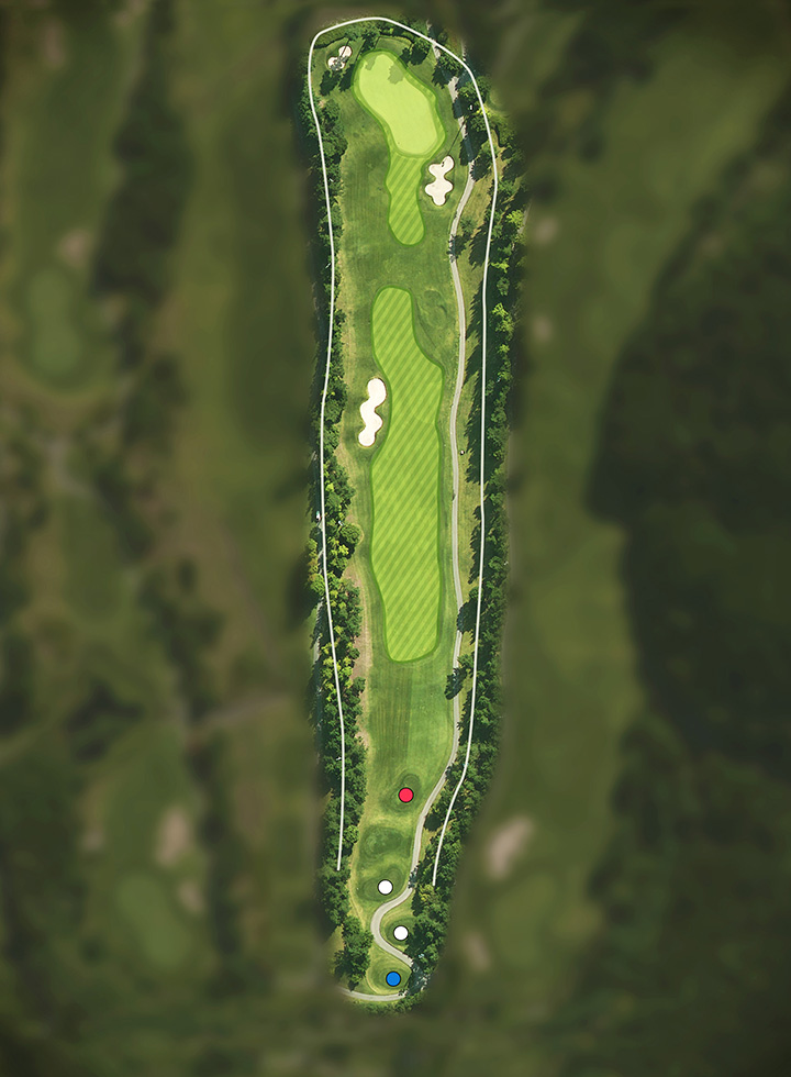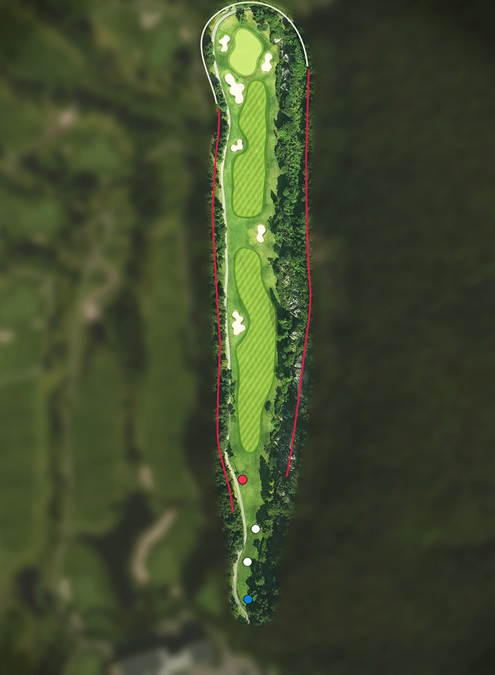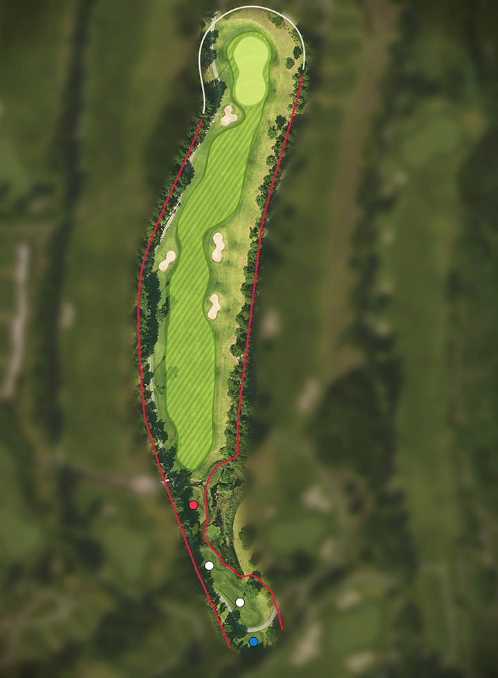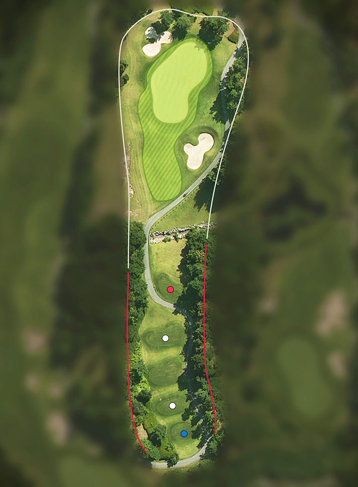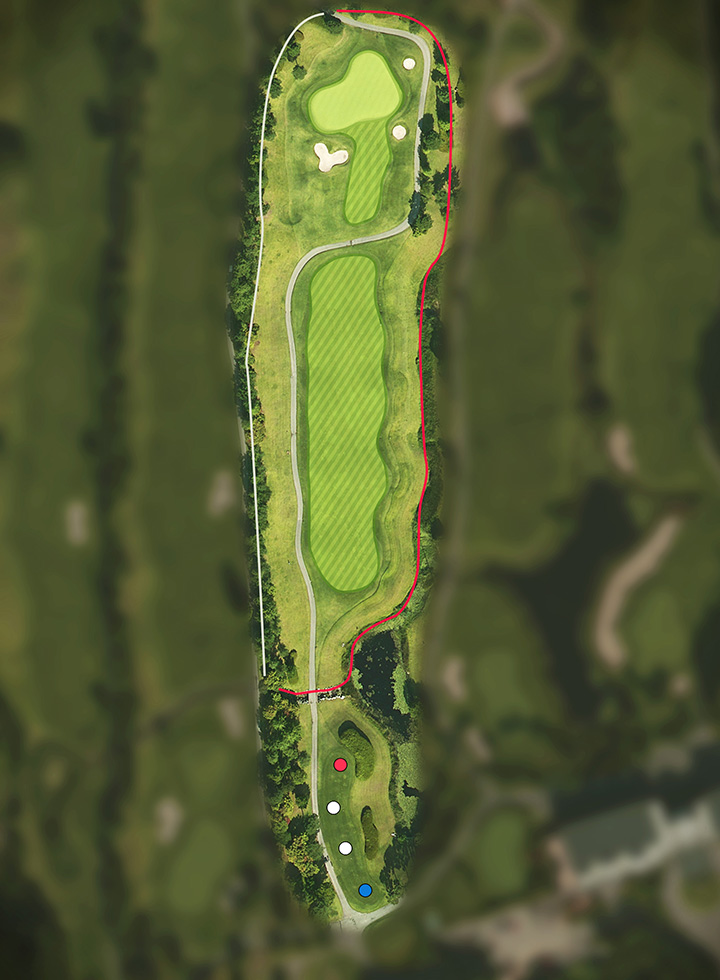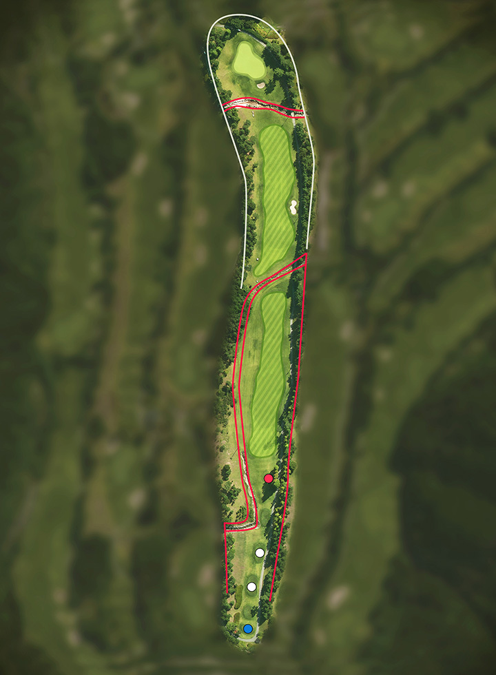 • [공략 포인트] 가장 긴 PAR 5홀이며, 전방 왼쪽에 보이는 나무 군집을 보고 티샷합니다. 세컨샷은 전방 360미터 지점에 페어웨이를 가로 지르는 크리크가 있으니 클럽 선택에 신중합니다.