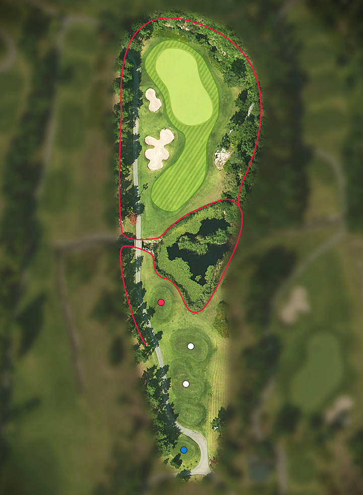 • [공략 포인트] 페어웨이 앞에 연못이 있지만 그린공략이 편안한 홀입니다. 그린 왼쪽에 벙커가 있어 정확한 공략이 필요합니다.