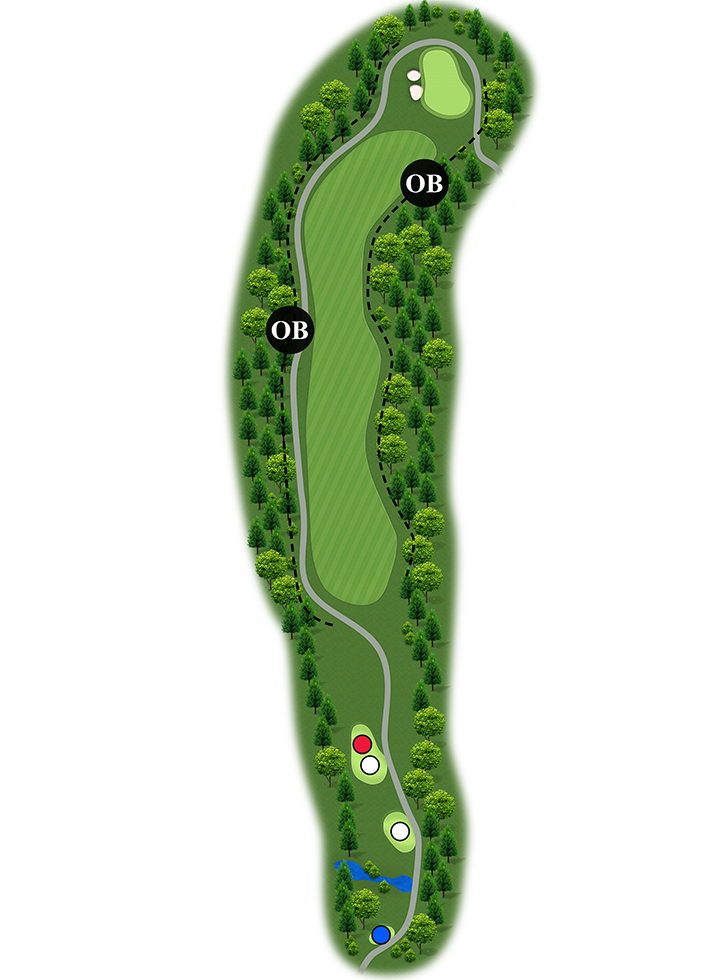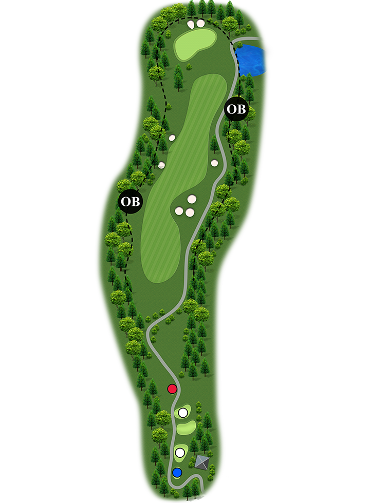 클럽하우스에서 불어오는 바람의 영향을 많이 받는 홀이다. 거리도 만만치 않아 거리의 부담을 주는 홀이다. 오른쪽은 내리막 깊은 러프가 있어 공략은 필히 왼쪽으로 해야 한다.