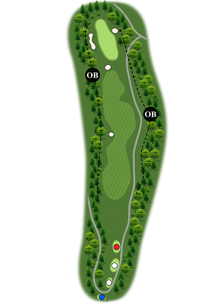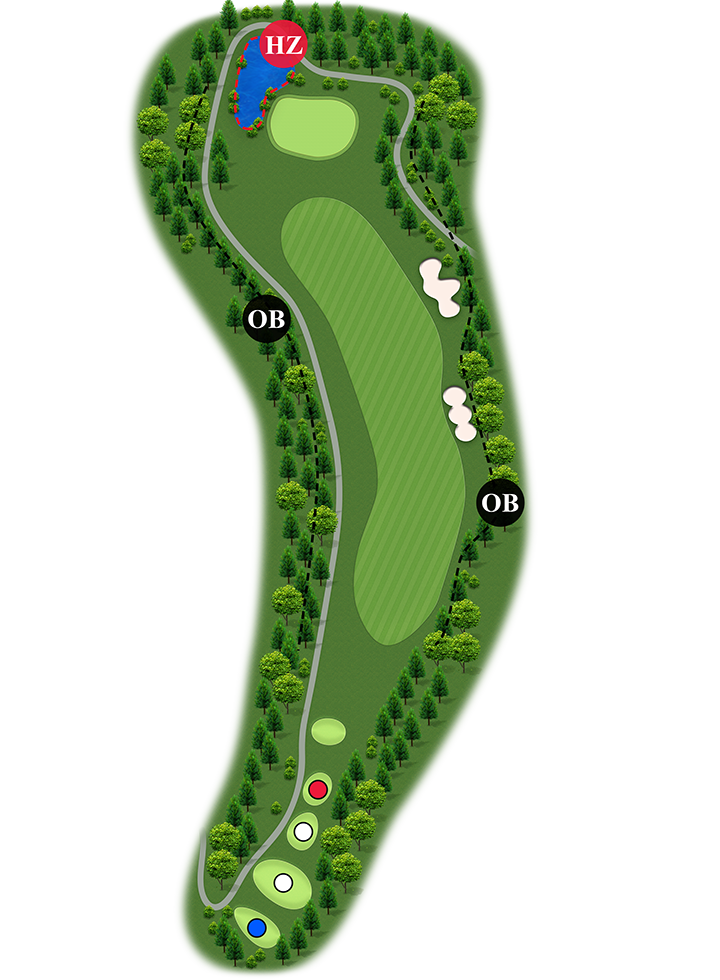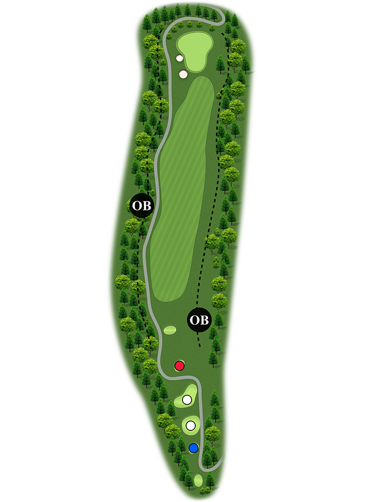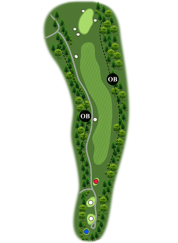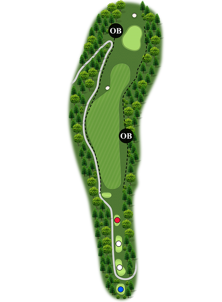 양측 OB지역이다. 티샷은 장타자일 경우 왼쪽 카트도로 쪽으로 공략한다면 One On이 가능한 홀이다. 하지만 방향성이 정확하지 않다면 해저드에 들어 갈 수 있다. 세컨샷은 긴것 보다는 짧은것이 유리하다.