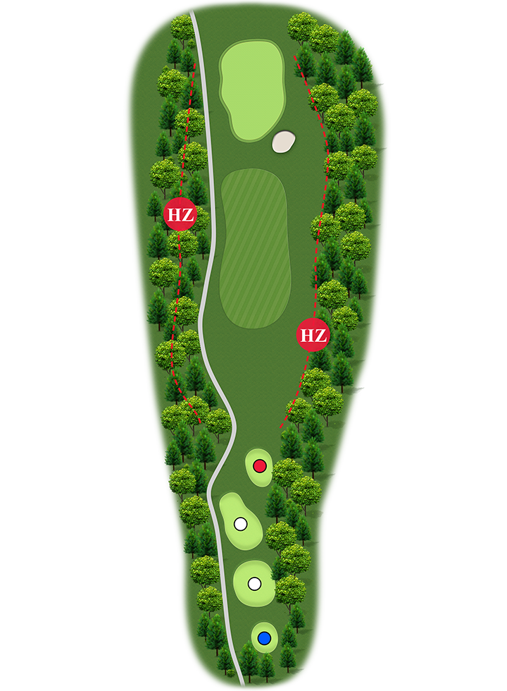 페어웨이 존은 비교적 넓은 홀이다. Hook성 타구는 금물이다. 티샷에서 거리를 확보해 놓지 못한 경우 다음 샷은 그린이 포대그린이므로 길게 보고 공략하는 것이 퍼팅에 유리할 것이다.