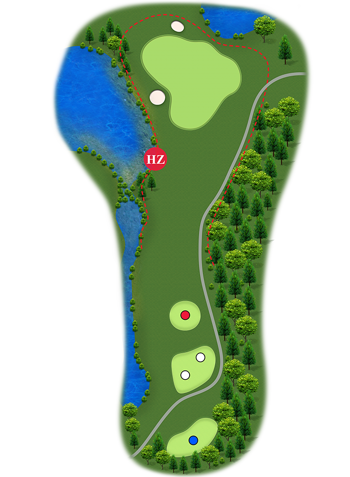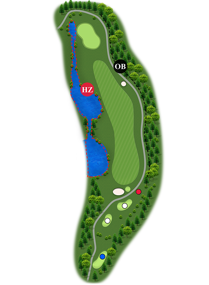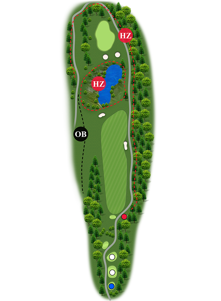 좌측 해저드가 부담을 주는 홀이다. 미스샷은 용납하지 않는다. 핀을 보고 공략하기보다는 넓은 그린을 보고 티샷을 구사하는 것이 위험을 줄일 수 있다.