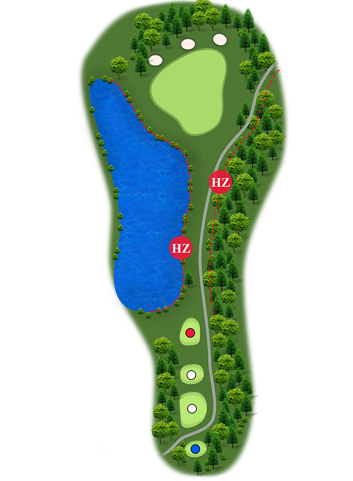 왼쪽에 3개의 연못이 그린을 따라 펼쳐있는 아름다운 홀이다. Hook성 타구는 해저드에 들어갈 확률이 높다. 오른쪽 벙커를 겨냥해서 샷을 해야 될 것이며 그린은 Pin Position에 따라 거리 차이가 많이 난다.