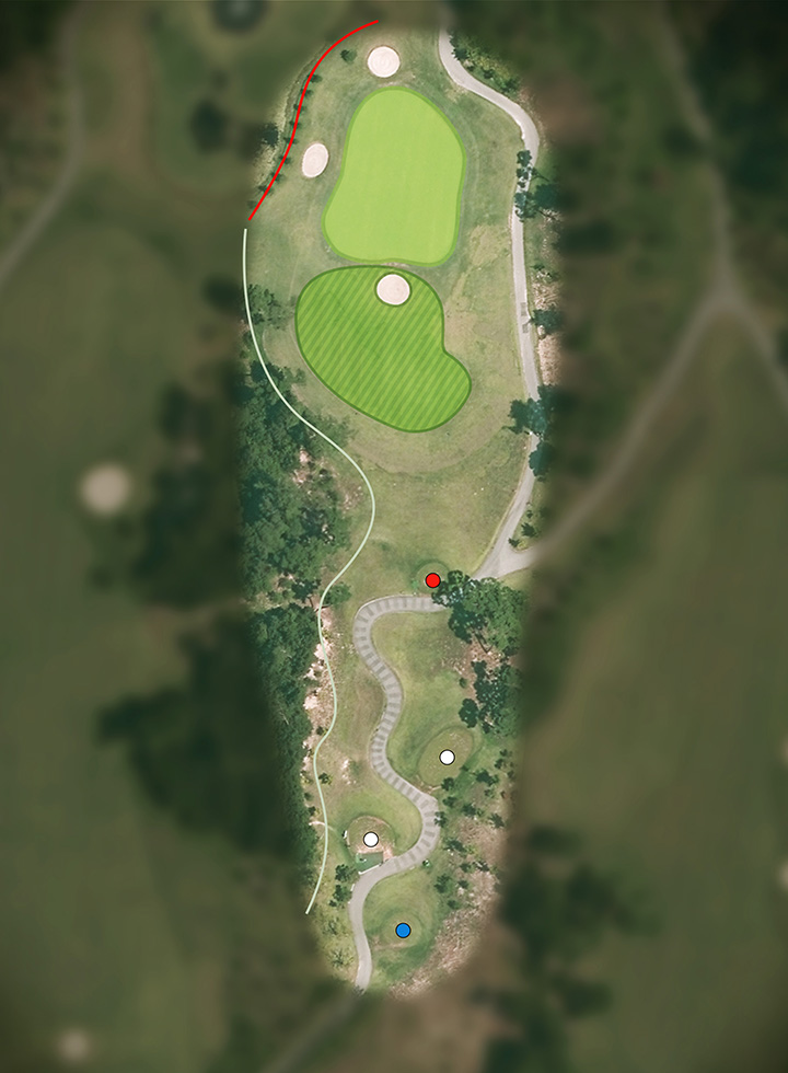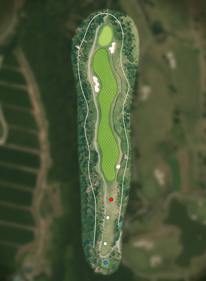 그린이 보이지 않는 블라인드 홀입니다. 약간 좌측 도그렉 홀로. 방향은 중앙 좌측이 좋습니다.그린 뒤 여유 없으며, 좌우측 오버될 경우 해저드로 빠질 수 있으니 짧게 보는게 좋습니다. </br>