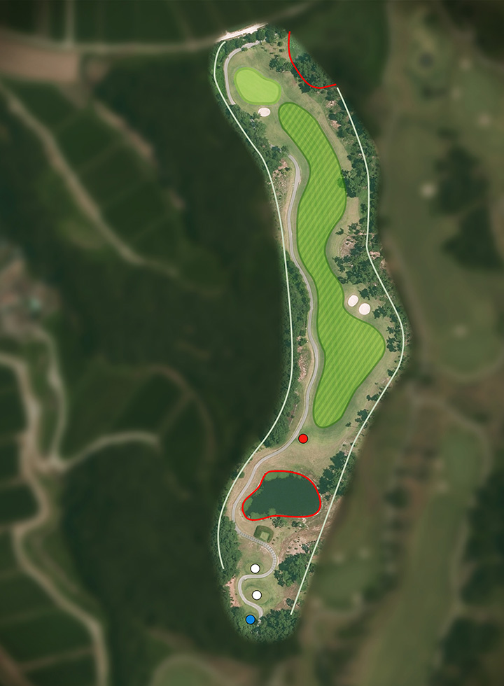좌우측 OB가 있는 다소 짧은 파 5홀로, 파 세이브가 무난한 홀 입니다.거리보다는 정확한 샷이 요구되는 홀입니다. </br>