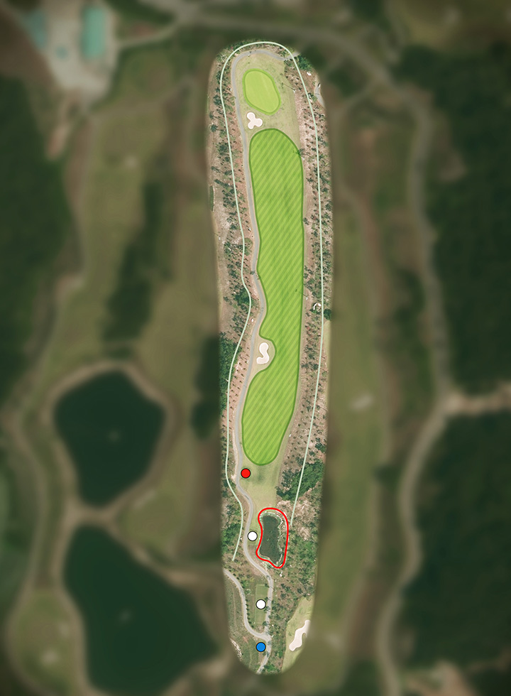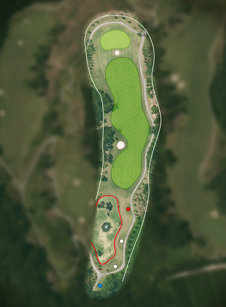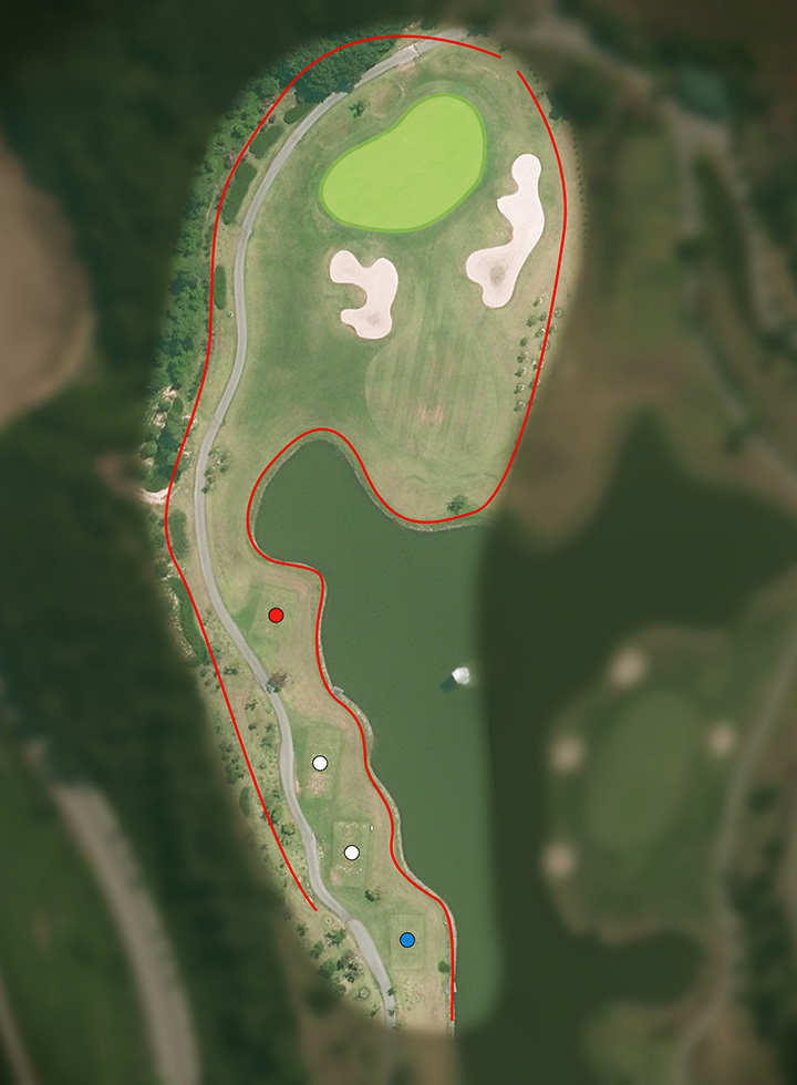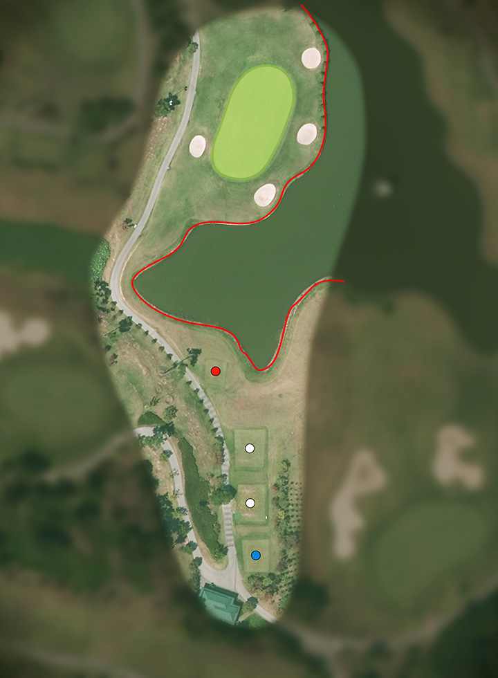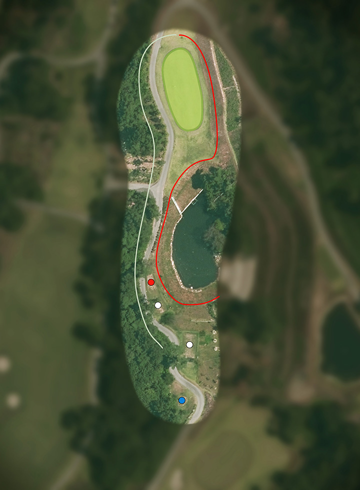 화이트티 기준 176m로 다소 긴 파 3홀입니다. 한 클럽 크게 치는게 좋습니다. 해저드 넘기는 거리는 150m입니다.</br>