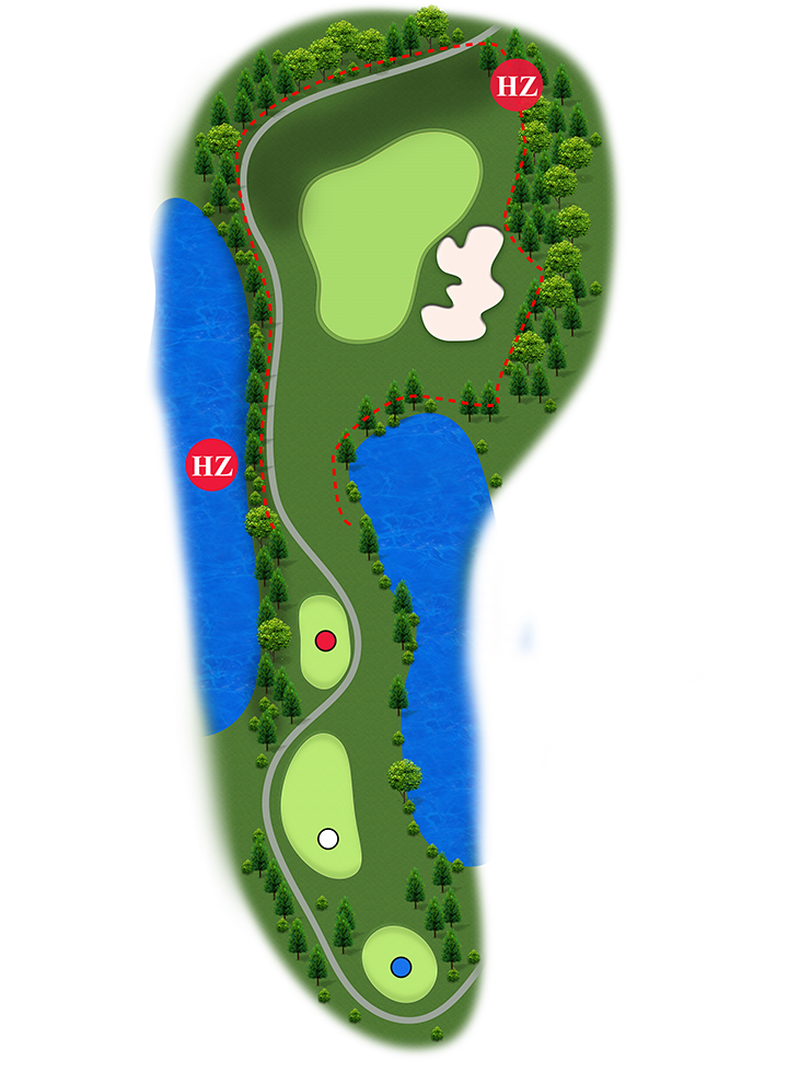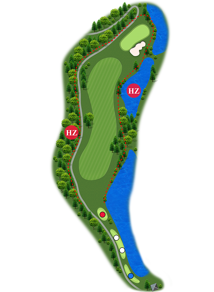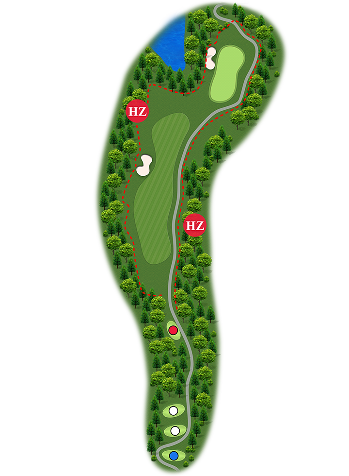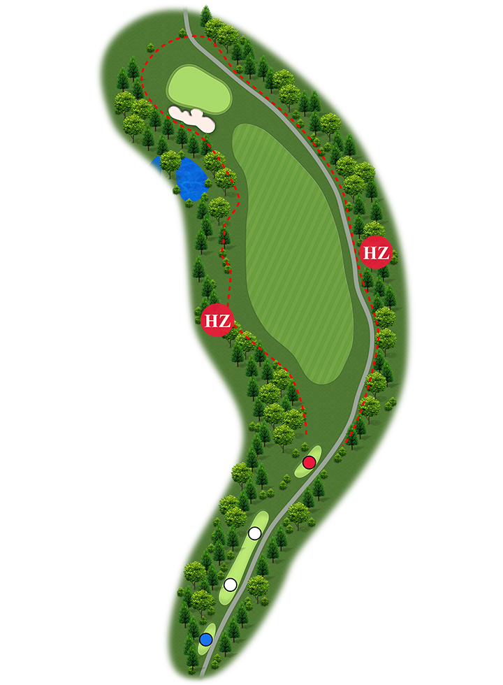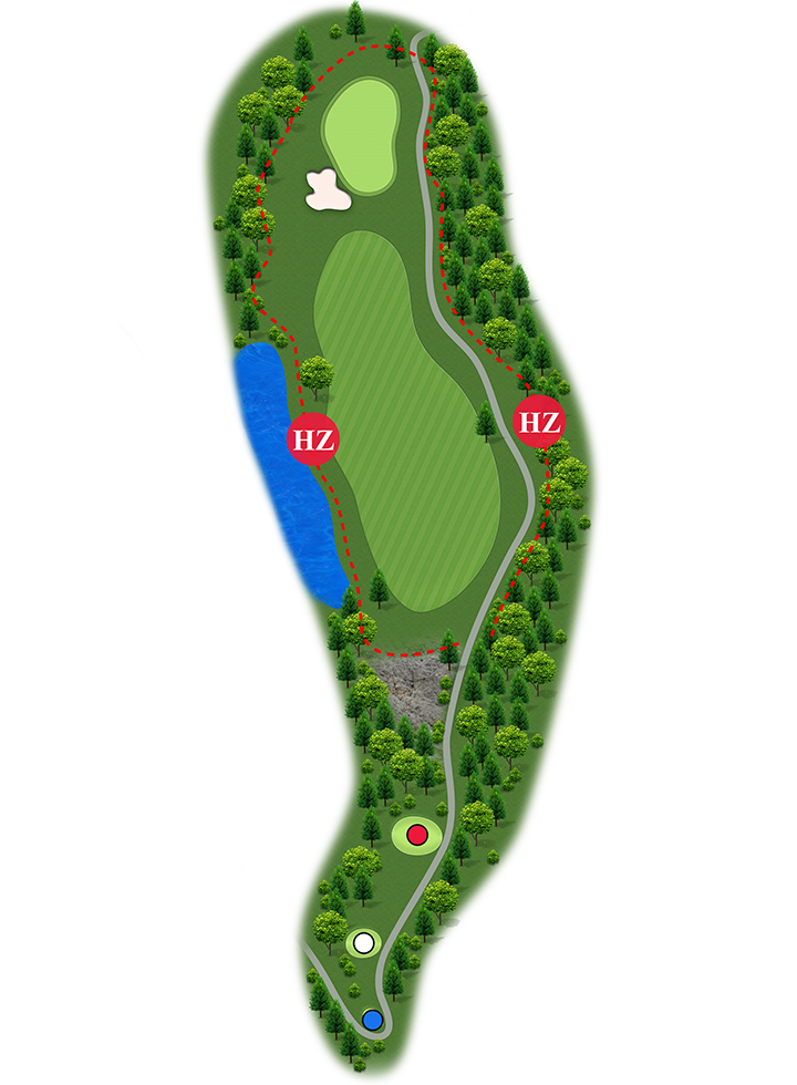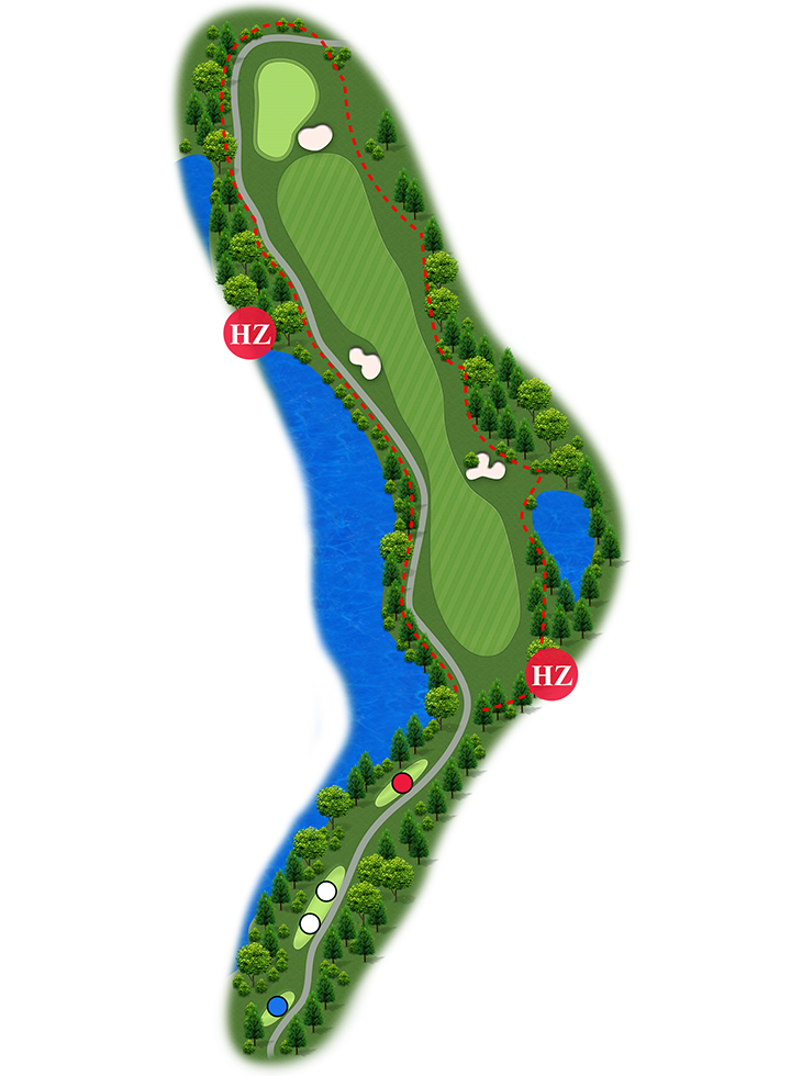 • 티샷이 편안한 내리막 홀이다. 좌/우측 해저드 지역이므로 페어웨이 중앙을 보고 공략하면 좋다.