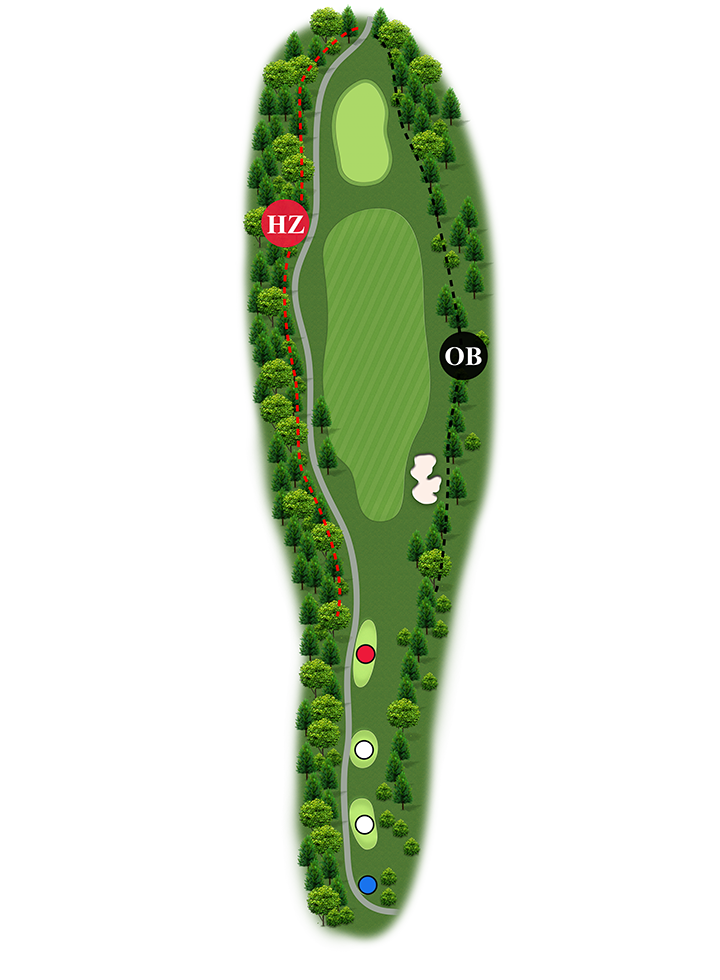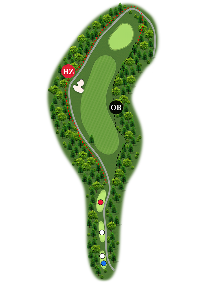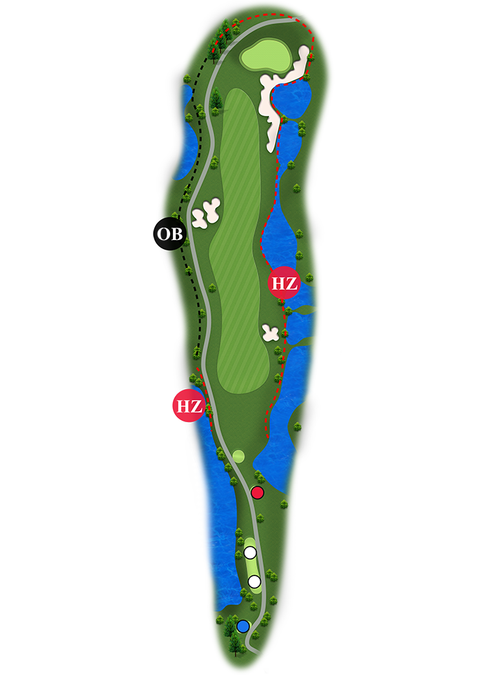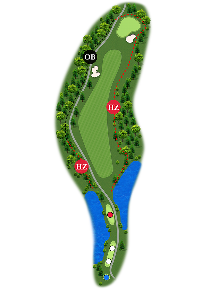 • 우측은 OB, 좌측은 해저드로 다소 위험이 있지만 페어웨이 중앙을 향해 시원한 장타를 날려 도전해 볼만한 홀이다.