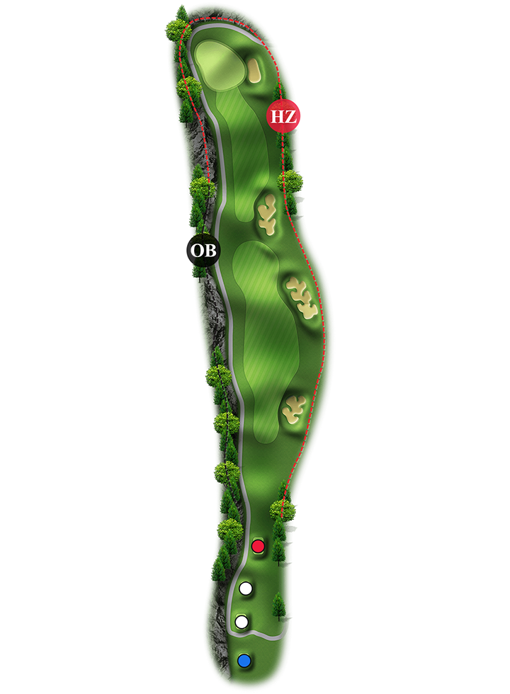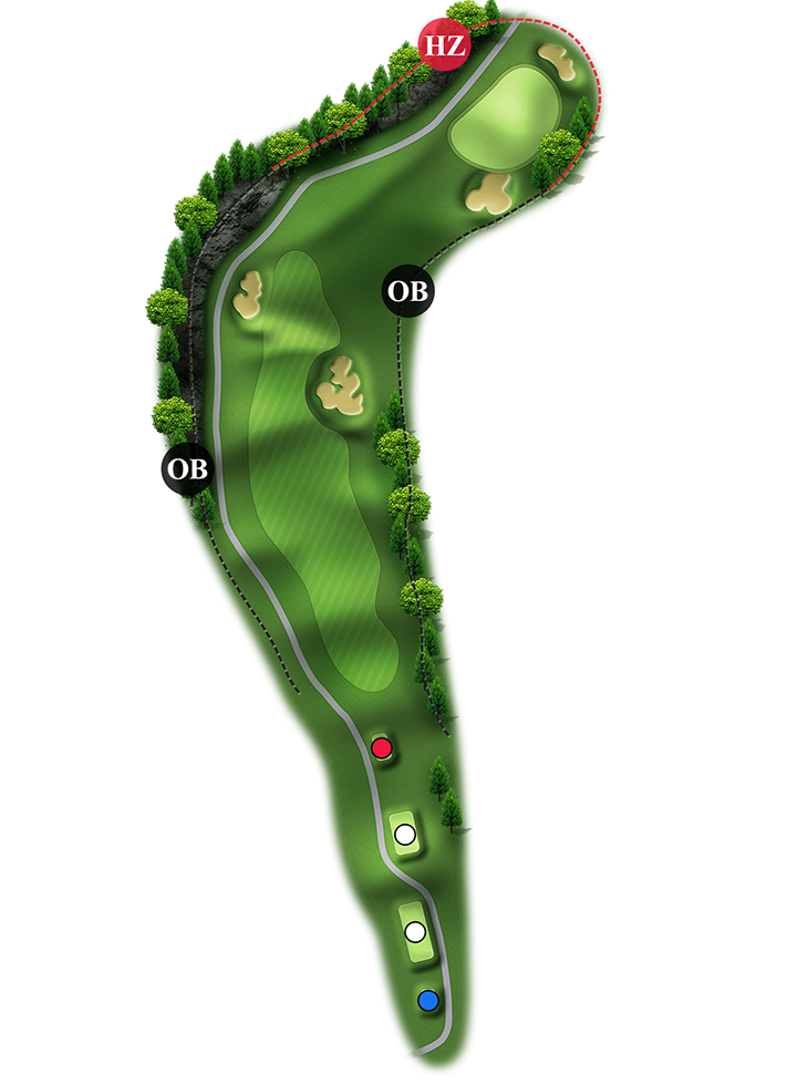 좌 도그랙 업힐 par5홀이며 좌우 O.B로 티샷시 신중한 티샷을 요구한다. 다소 짧은 par5홀이나 페어웨이 왼쪽으로 안정적인 샷을 구사할 시 보상이 완벽한 홀이다.