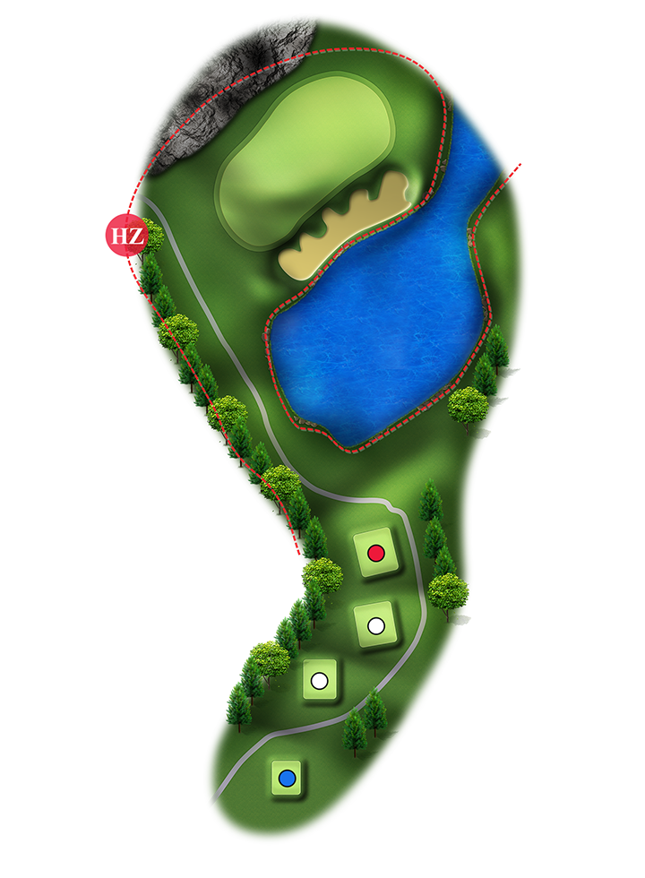티잉 그라운드 바로 앞 해저드를 넘겨야 되는 par4홀! 짧은 전장으로 세컨 샷이 용이하나 아이언으로 티샷을 하게 될 시 그린이 보이지 않는 블라인드 홀이므로 클럽 선택의 중요성이 필수인 홀이다.