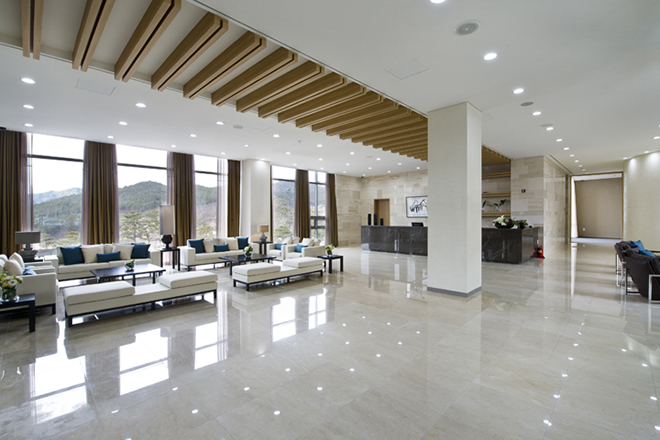설계 전부터 건축계가 극찬했던 완성도 높은 클럽하우스입니다. '2007 아름다운 건축대상'을 수상할 정도로 우수합니다. 나무는 캐나다에서 구조체는 모두 일본에서, 조립은 국내에서 이뤄졌고, 목재를 이용해 한국 전통적인 건물양식을 그대로 살리면서 웅장함과 모던한 아름다움까지 함께 갖고 있습니다. 한옥이 잘 보존돼 전체적인 이미지를 손상하지 않도록 고민했습니다.