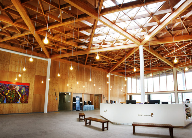 고급원목을 활용하여, 자연에 가까운 따뜻함과 편안함을 보여줍니다. 위에서 내려오는 조명등은 고즈넉한 빛이 되어 은은한 분위기를 연출합니다. 코스 전경을 볼 수 있는 테라스가 있어 골프장을 한 눈에 느낄 수 있습니다.